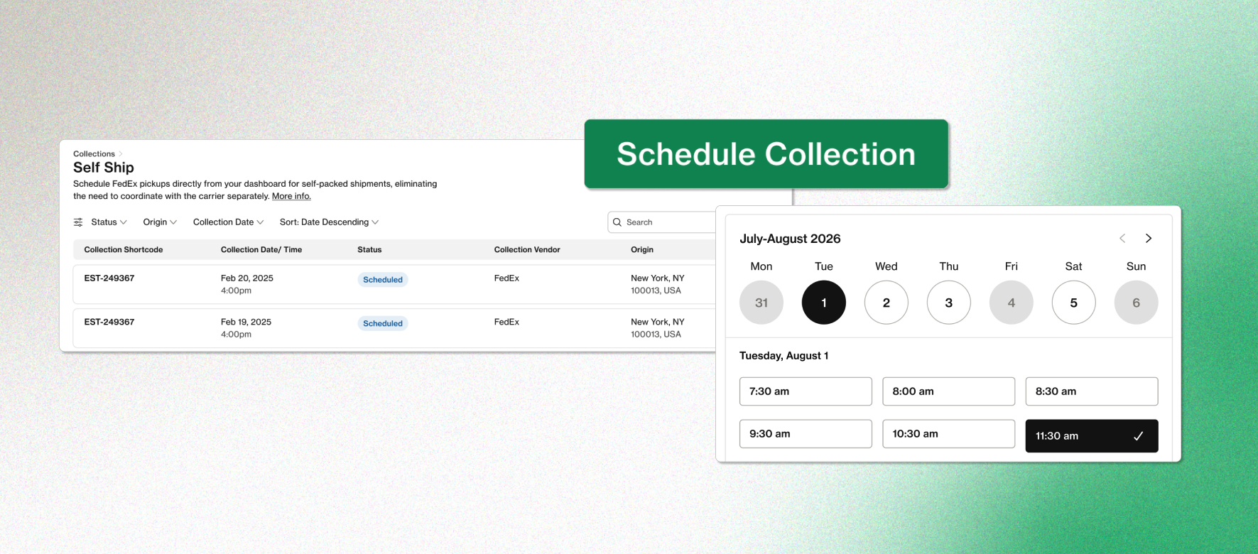 You can now schedule parcel carriers to come collect Self Ship packages at your location - right from your dashboard.